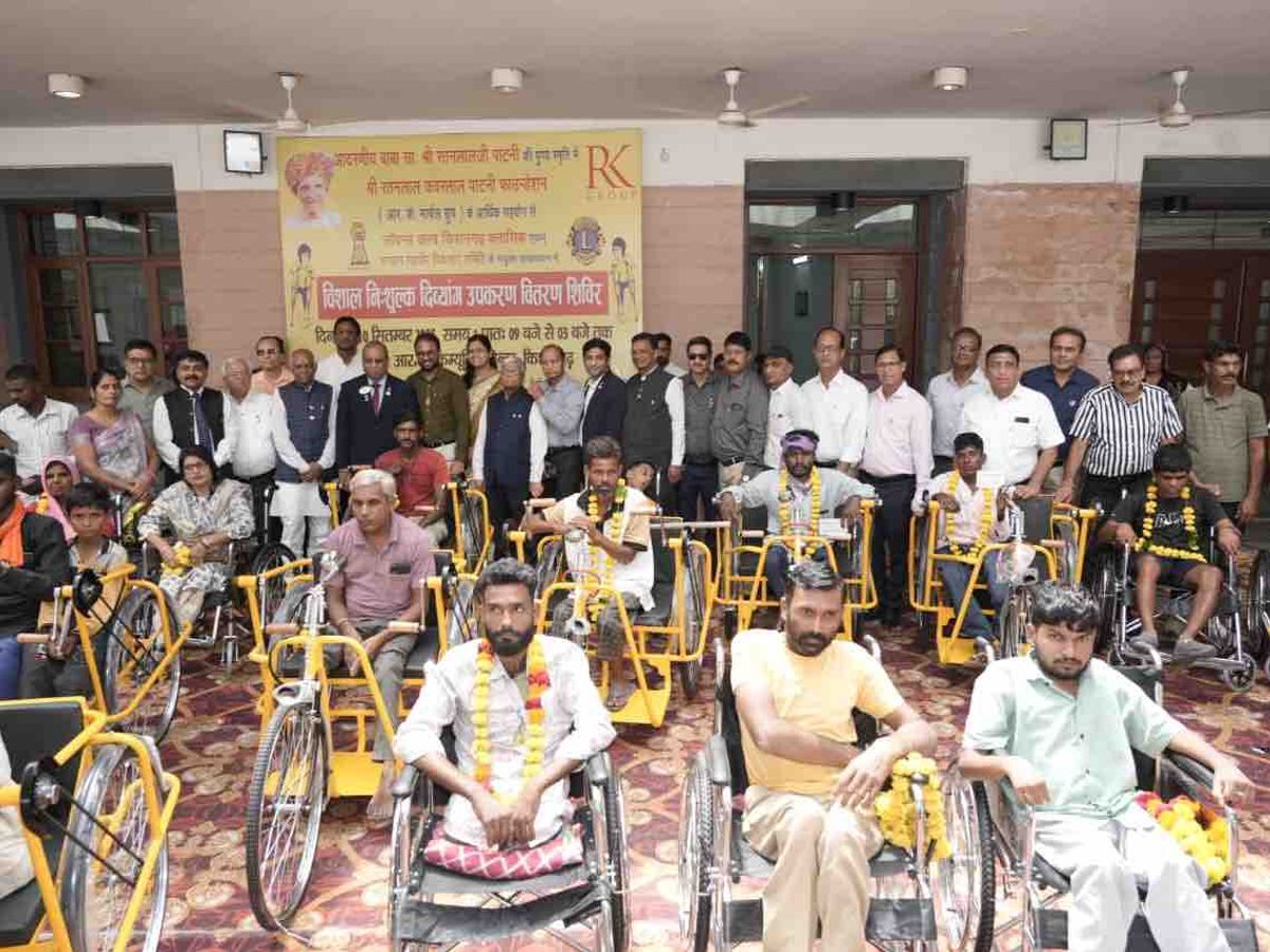 स्व. रतनलाल पाटनी की पुण्य स्मृति में आरके फाउंडेशन ग्रुप के सहयोग से लायंस क्लब किशनगढ़ क्लासिक और महावीर विकलांग समिति के संयुक्त तत्वावधान में बुधवार को निःशुल्क दिव्यांग उपकरण वितरण शिविर का आयोजन किया गया।
