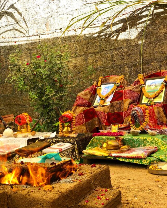 मंदिर के गर्भगृह के पास सदियों से एक ‘अखंड धूनी’ जल रही है। मान्यता है कि इस अग्नि कुंड में शिव-पार्वती का विवाह संपन्न हुआ था। मंदिर के प्रांगण में चार कुंड हैं- रुद्र कुंड, विष्णु कुंड, ब्रह्म कुंड, और सरस्वती कुंड।