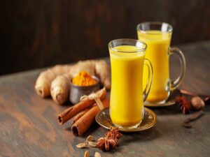 हल्दी को दूध में उबालकर पीना एक बेहतरीन कॉम्बिनेशन है क्योंकि दूध प्रोटीन का बेस्ट सोर्स है जो घाव को भरने में मदद करता है और हल्दी में ऐंटी-इन्फ्लेमेट्री प्रॉपर्टीज होती हैं जो मसल्स में सूजन और जलन में राहत दिलाती हैं। हल्दी में कर्क्यूमिन भी होता है जो की एक स्ट्रॉन्ग ऐंटिऑक्सिडेंट है जो इम्यून सिस्टम को मजबूत बनाने में मदद करता है।