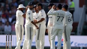 भारतीय पारी की शुरुआत अच्छी रही, जिसमें यशस्वी जायसवाल (58), साई सुदर्शन (61) और केएल राहुल (46) ने अहम योगदान दिया। शुभमन गिल सिर्फ 12 रन बना सके। मध्यक्रम में चोटिल ऋषभ पंत ने हिम्मत दिखाई। रिवर्स स्वीप के दौरान चोटिल होने के बाद भी पंत दोबारा मैदान में लौटे और 75 गेंदों में 54 रनों की संघर्षपूर्ण पारी खेली। इस पारी में उन्होंने तीन चौके और दो छक्के लगाए।